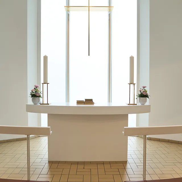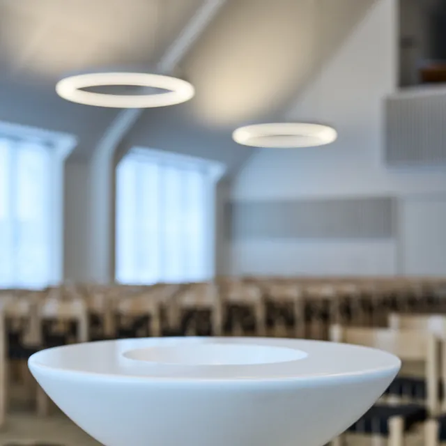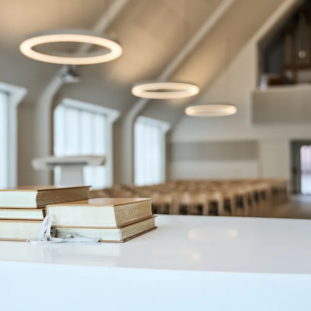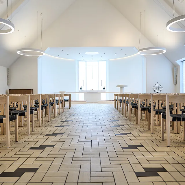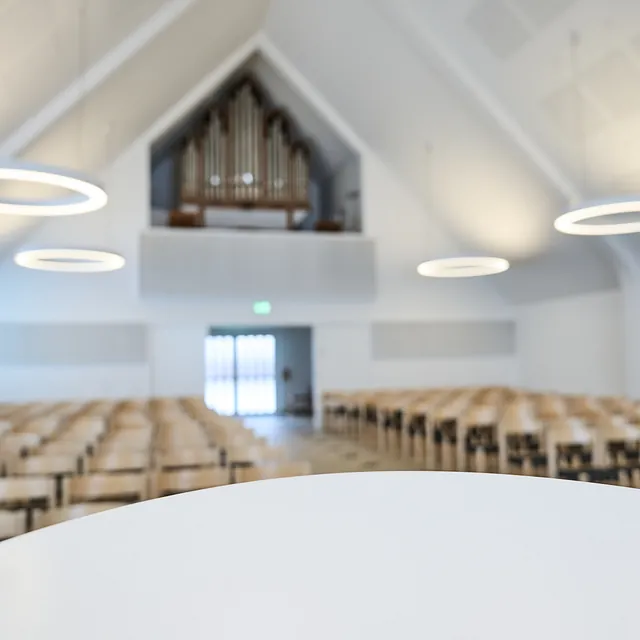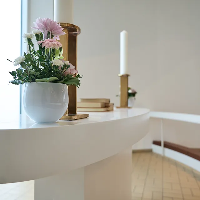 Birkholm Kirkesal er enkelt indrettet og selvom den ofte benyttes til bisættelser og begravelser, kirkelige såvel som borgerlige, så er den også en smuk baggrund for vielse og dåb.