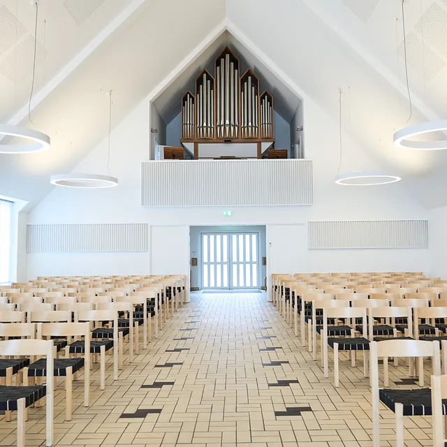 I dag fremstår kirken indvendigt som et lyst og indbydende rum med åben tagryg og naturligt lysindfald fra det store vindue i apsissen samt de store vinduespartier langs sydmuren.