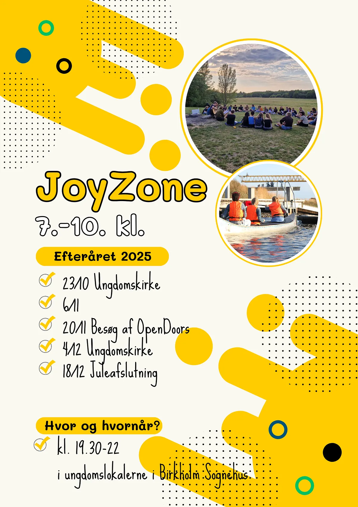 JoyZone er en klub for alle teenagere fra 7.-10. klasse, der har lyst til at være med. Vi har masser af hygge, spil, musik, Gudssnak, snakke og spørgsmål, og der er også plads til dig. Kom og vær med.