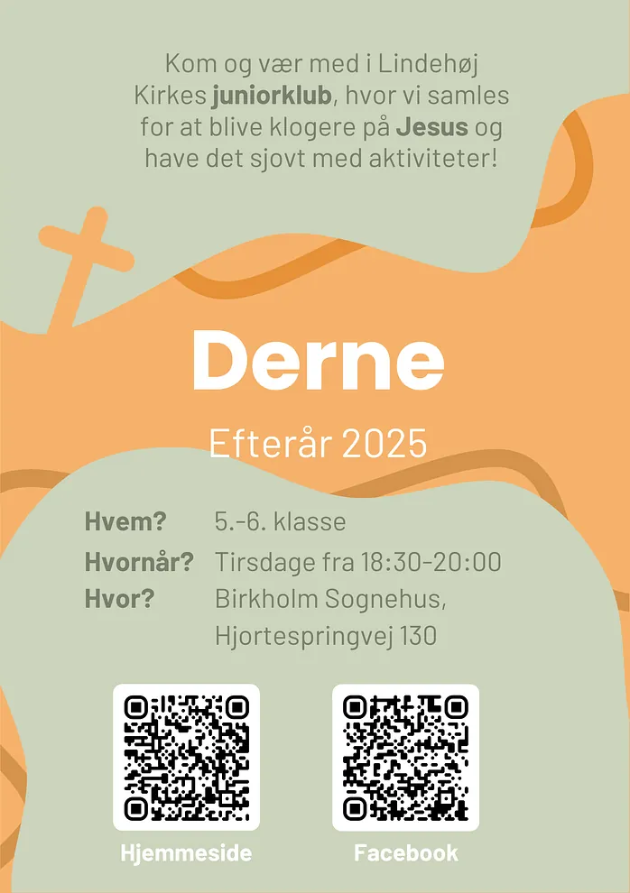Derne er en juniorklub for alle som går i 5. og 6. klasse. Vi mødes hver tirsdag kl. 18.30-20 i Birkholm kirkes ungdomslokaler. Vi begynder altid med at synge nogle sange og en bibelfortælling, hvor en leder fortæller noget fra Bibelen. Derefter laver vi nogle forskellige aktiviteter, fx noget aktivt eller kreativt.